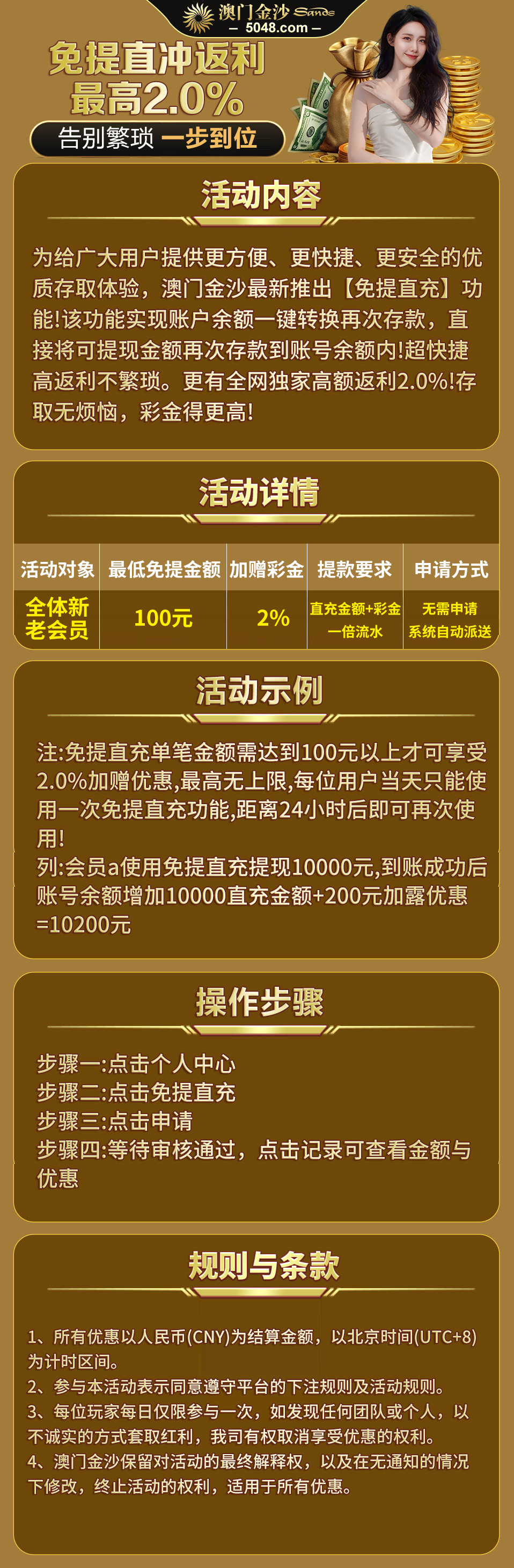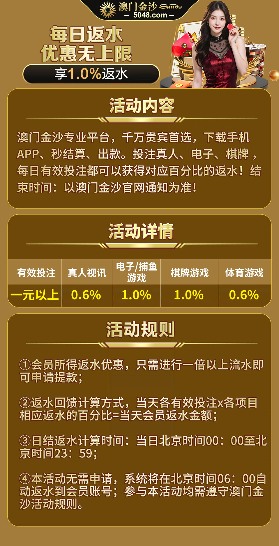 当日总有效投注返点,返佣秒结算零延迟自动结算退佣到您的会员账号,当日即可提交出款!