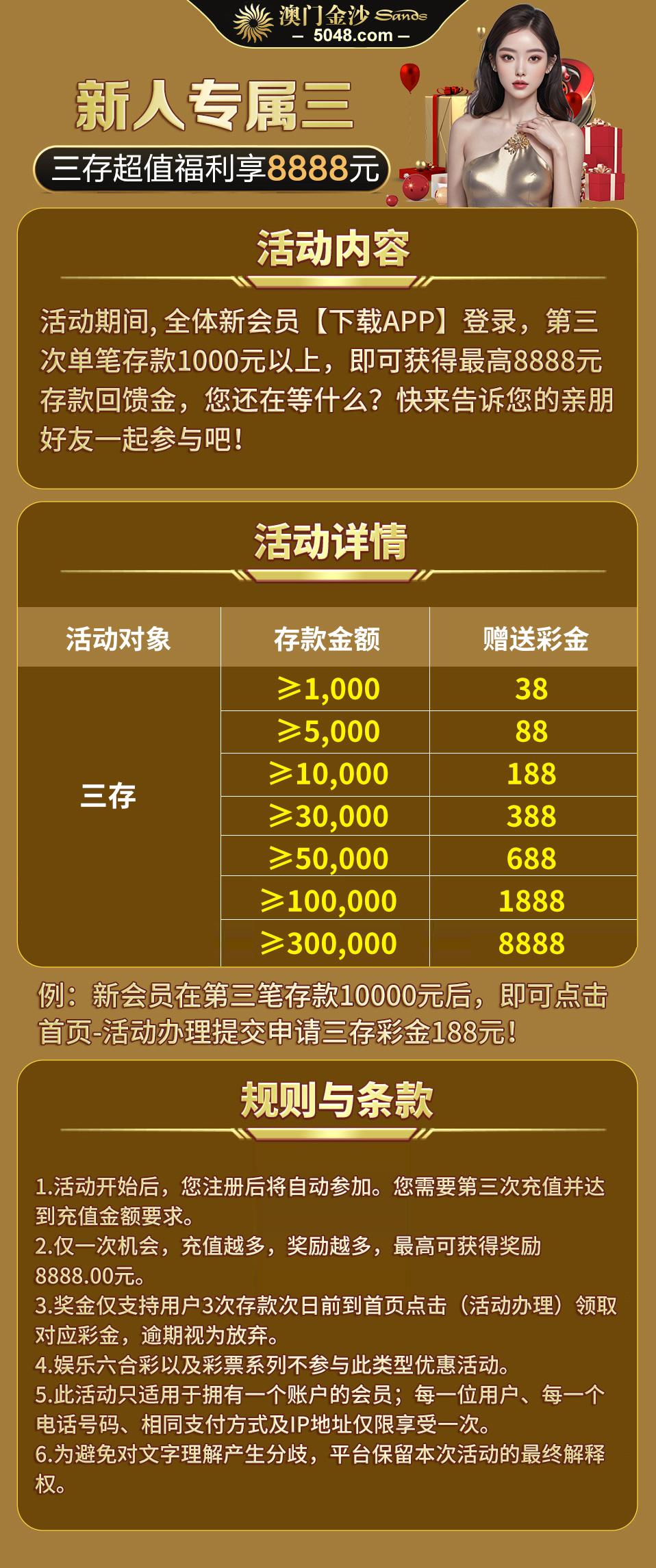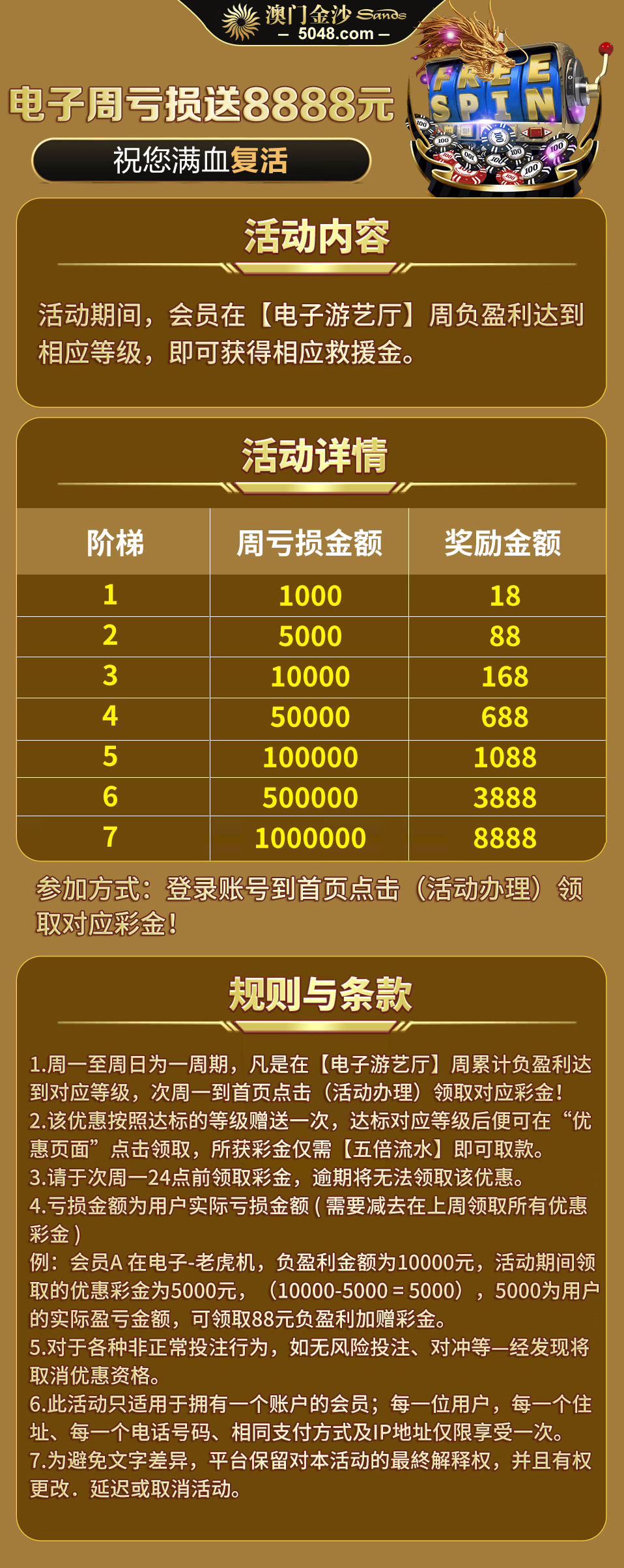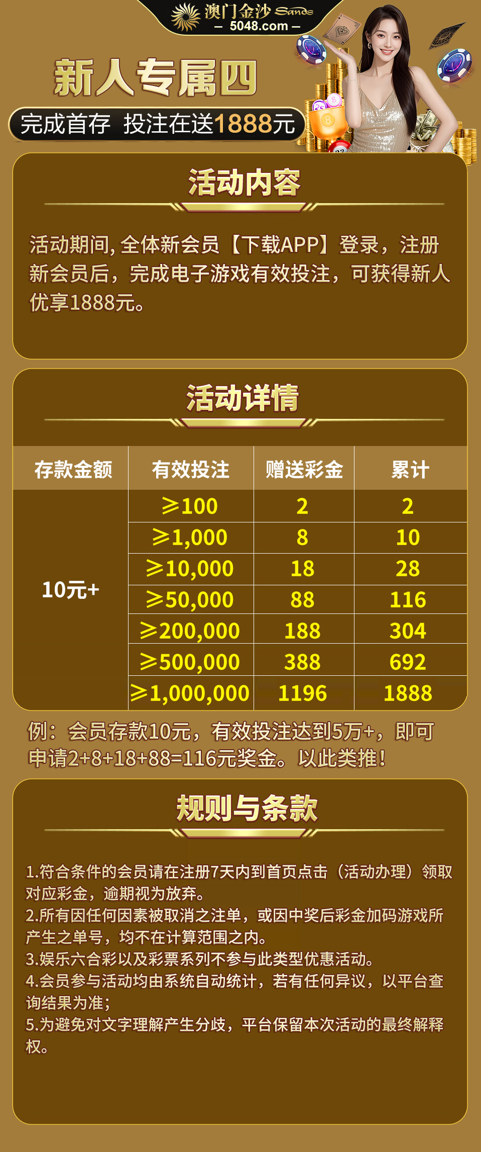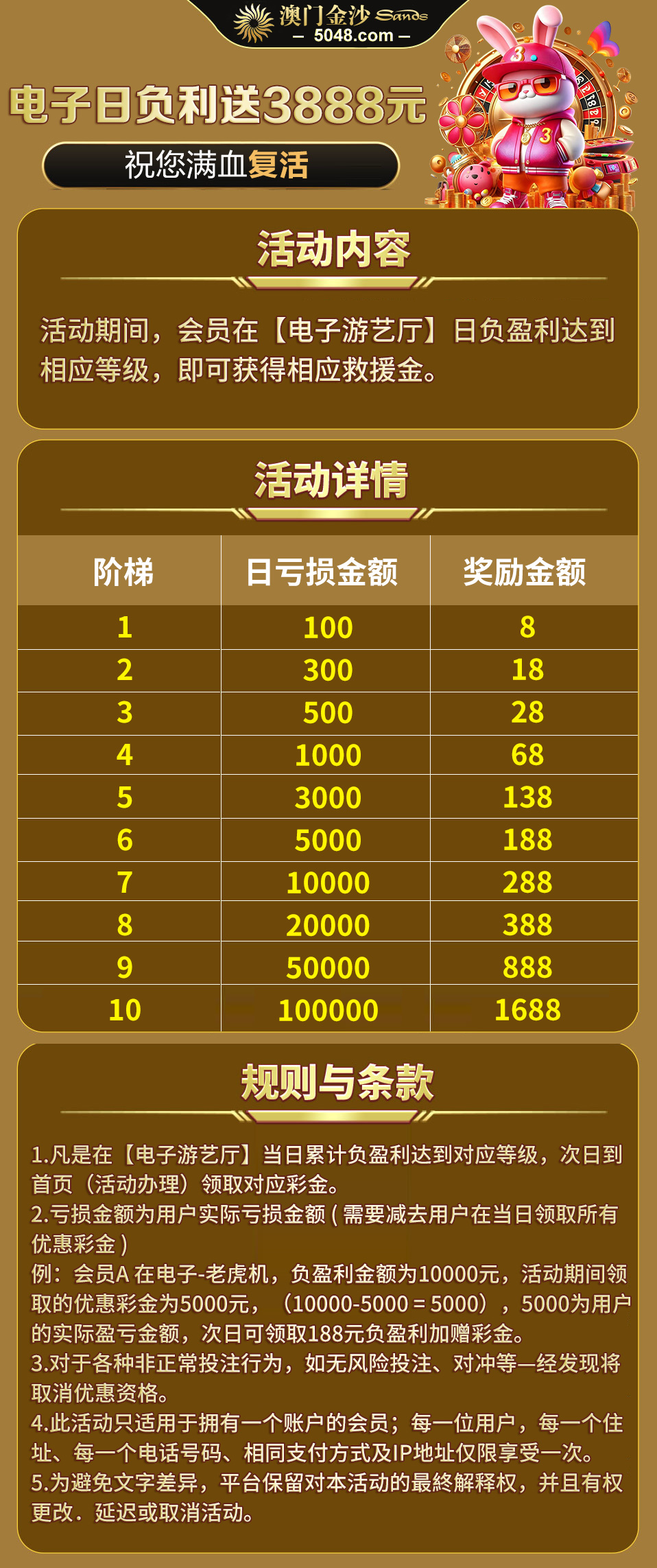 每一门槛均可一次申请机会,如您推荐有效下级玩家数量10+,则可咨询在线客服领取25+88+188=301元推荐彩金!