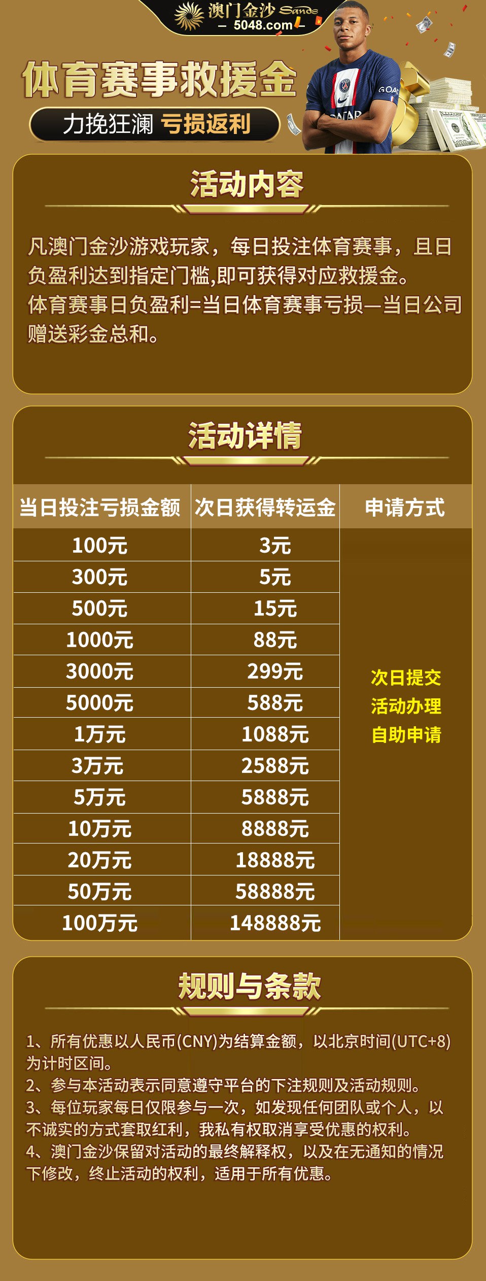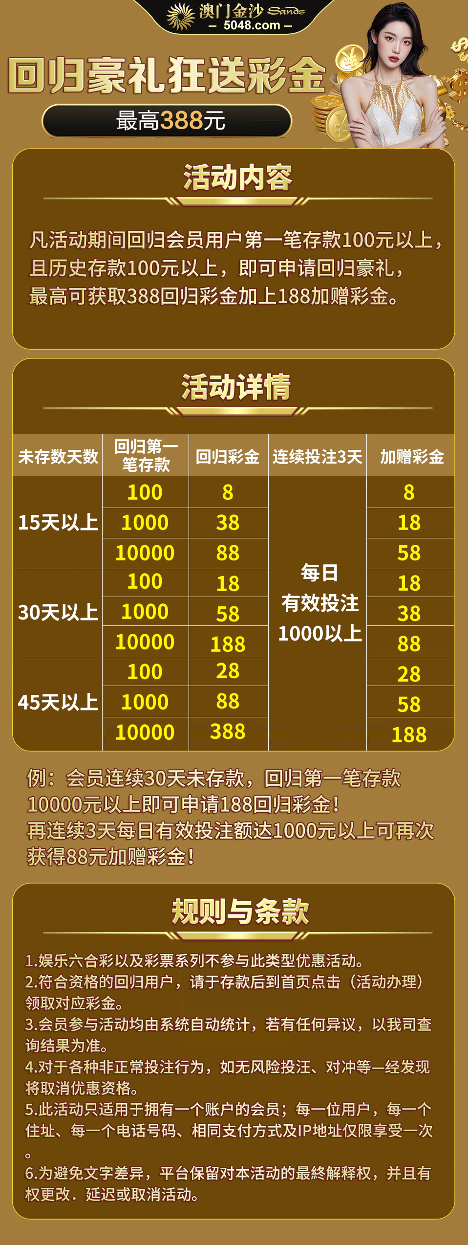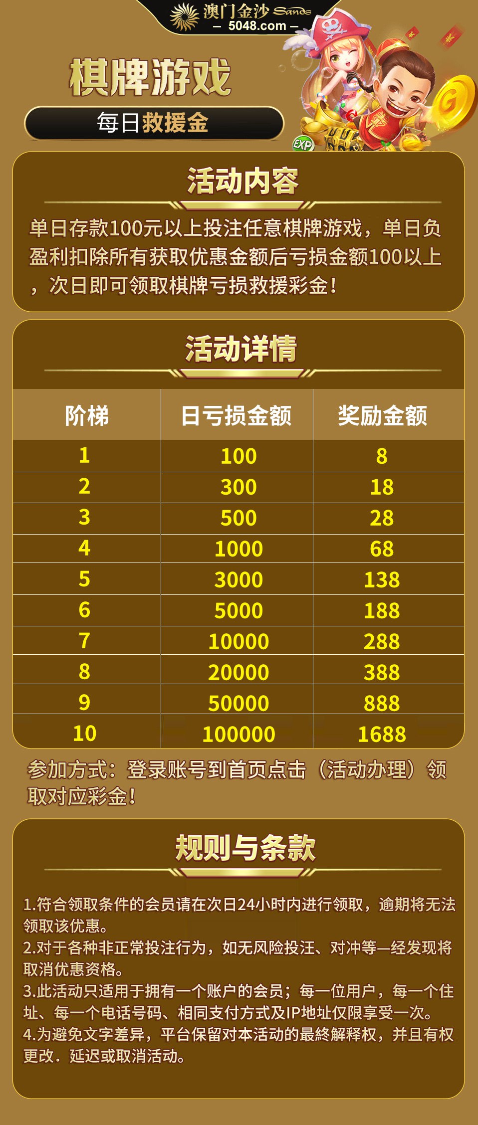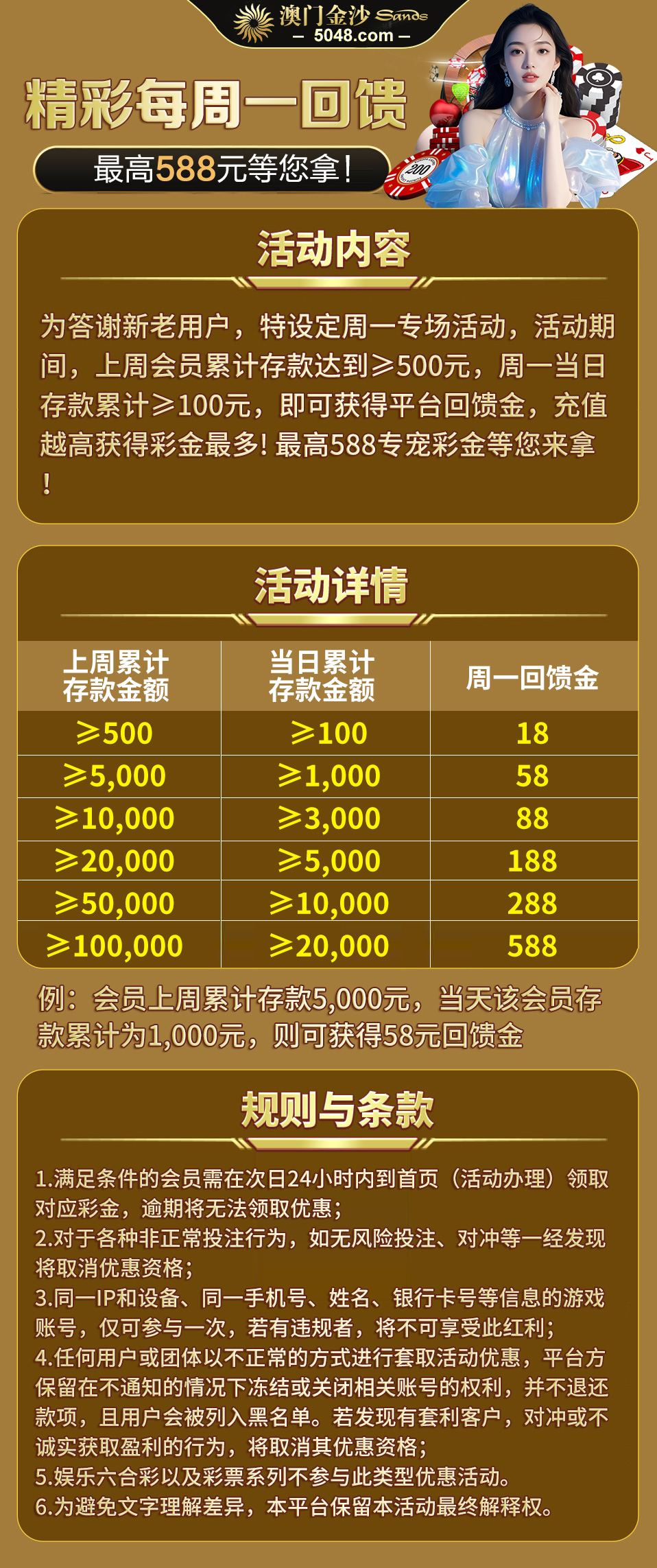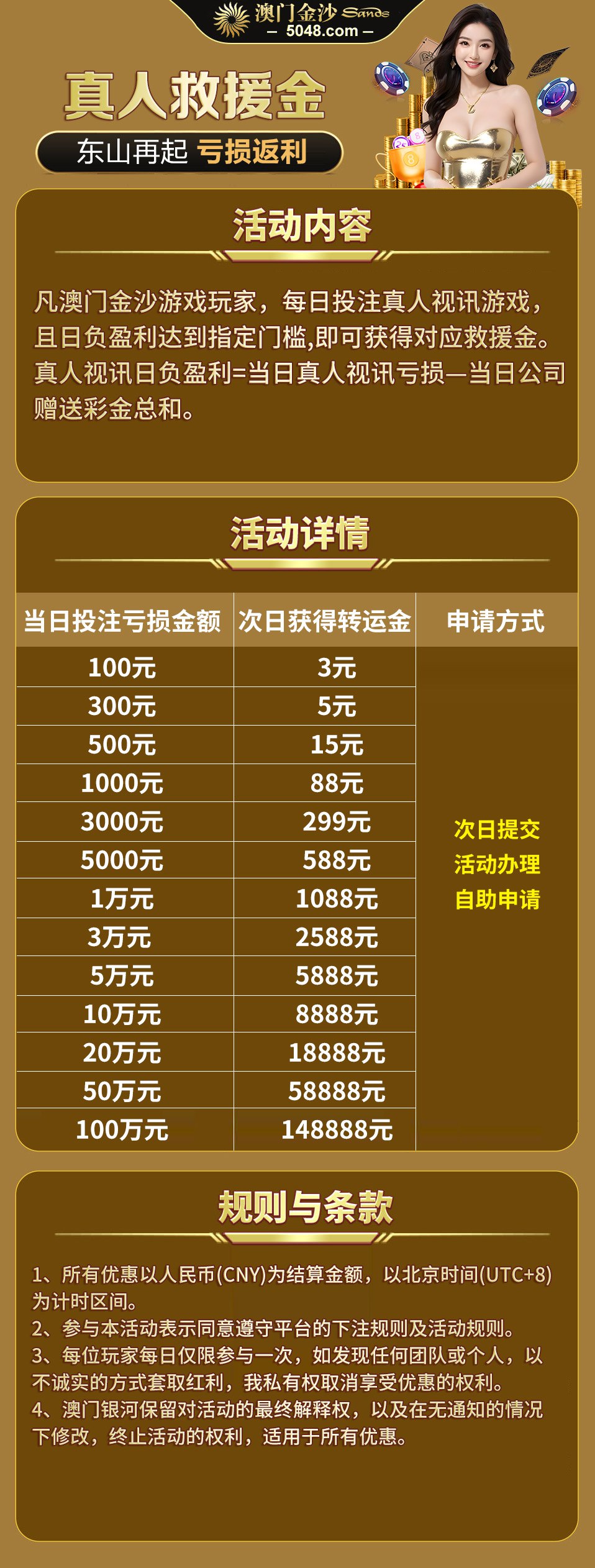 每一门槛均可一次申请机会,如您推荐有效下级玩家数量10+,则可咨询在线客服领取25+88+188=301元推荐彩金!